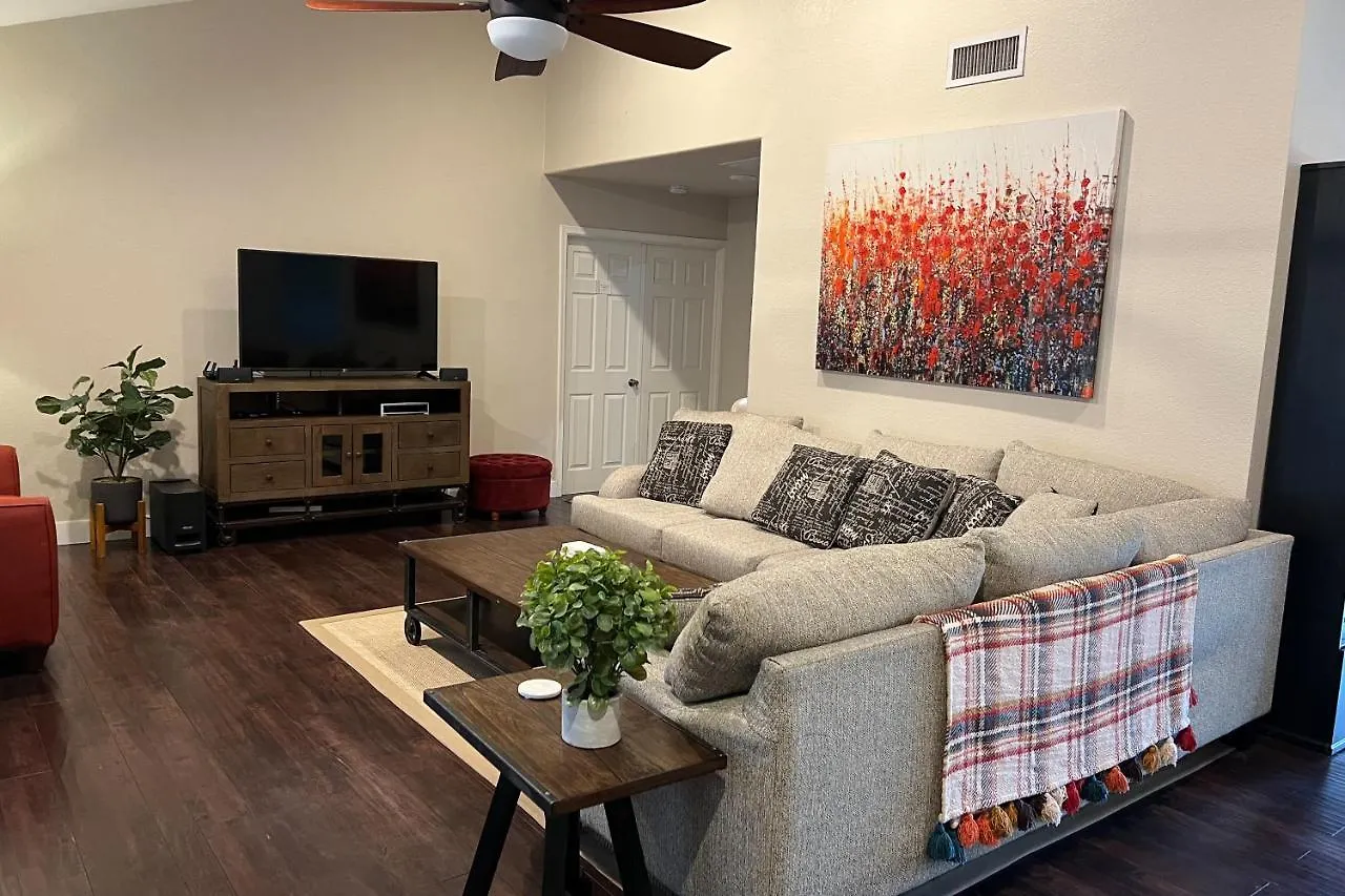 Corbell Park Paradise villa has an equipped kitchen with tea and coffee making facilities, a fridge, and a kitchenware. Guests can dine in McDonald's a 14-minute stroll from this Tempe property. Guests can easily reach Phoenix Sky Harbor International airport, located 13 miles from the 2-bathroom villa.